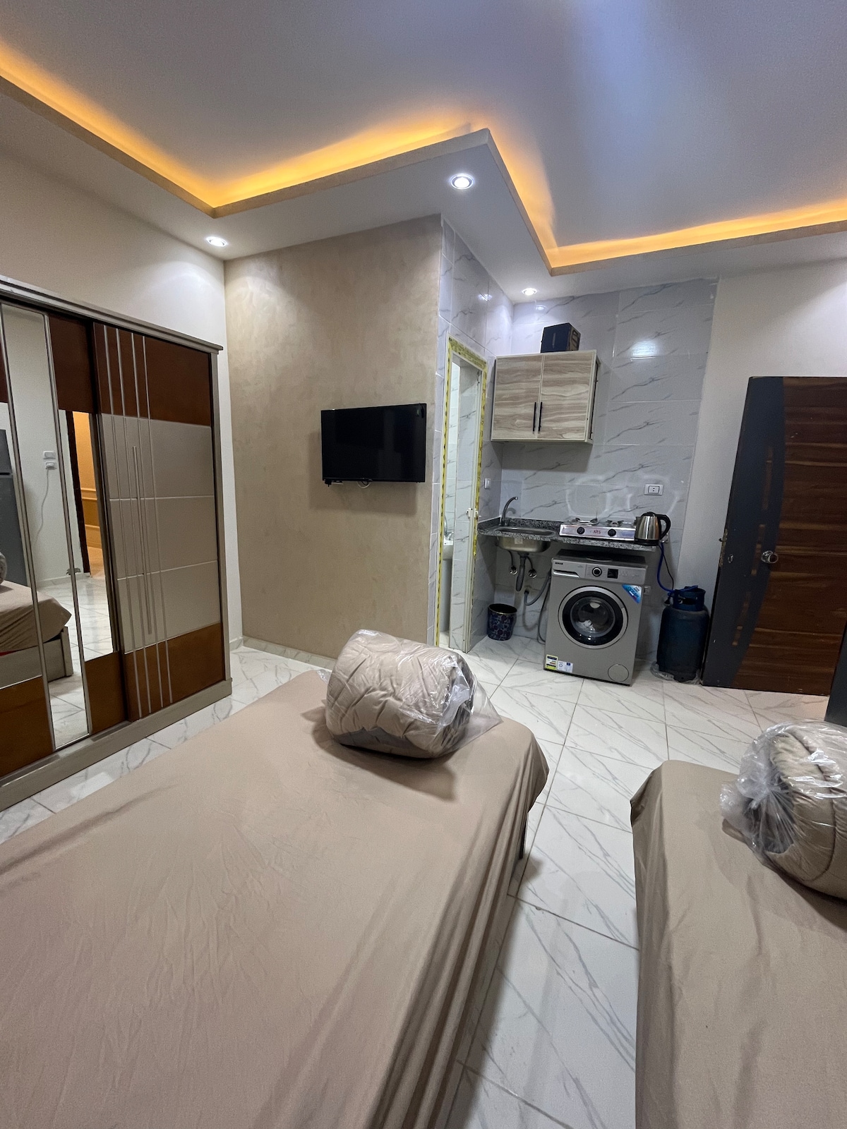 Genieße einen außergewöhnlichen Aufenthalt in unseren luxuriösen Hotelapartments, die den höchsten Standards an Komfort und Privatsphäre gerecht werden. Wir wissen, wie wichtig Privatsphäre und Komfort für saudische und ausländische Reisende sind, und bemühen uns, ein luxuriöses Wohnumfeld zu bieten, das deinen Erwartungen und deiner Überlegenheit entspricht. Egal, ob du einen kurzen Besuch oder einen langen Aufenthalt planst, unsere Hoteleinheiten sind deine perfekte Wahl für ein unvergessliches Erlebnis. Außergewöhnliche Lage: 10 Min. zu (Arkan Mall, Mall of Egypt und Mall of the Arabs) 5 Minuten zur (Axis Road und Al Wahat Road) 20 Minuten zum Großen Ägyptischen Museum 30 Minuten zu den Pyramiden von Gizeh