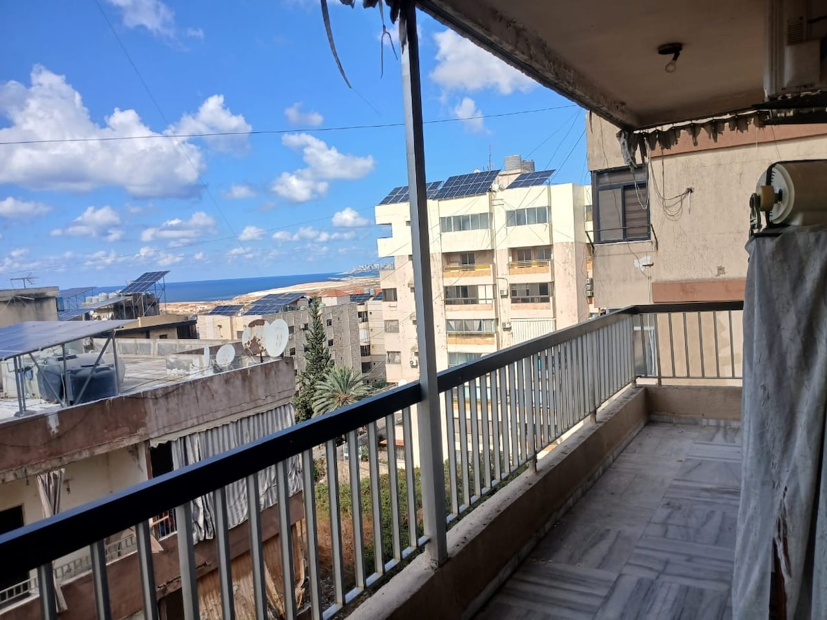 Meerblick – Privater Raum | 12 Minuten vom Flughafen Beirut entfernt Nur 3–4 Minuten vom Khaldeh Highway entfernt, in der Nähe von Strandresorts, Cafés und Restaurants. • Genieße eine Terrasse mit Meerblick für perfekte Morgen und gemütliche Nächte. • Zimmer mit freiem Blick • Kühlschrank und kleiner Herd • 24/7-Support bei Bedarf, da wir auf der gleichen Etage mit separatem Eingang sind/Nur Waschküche ist mit Vereinbarung zu teilen, da sie etwas zwischen den beiden Wohnungen liegt • Reflexzonenmassage im Zimmer auf Anfrage
