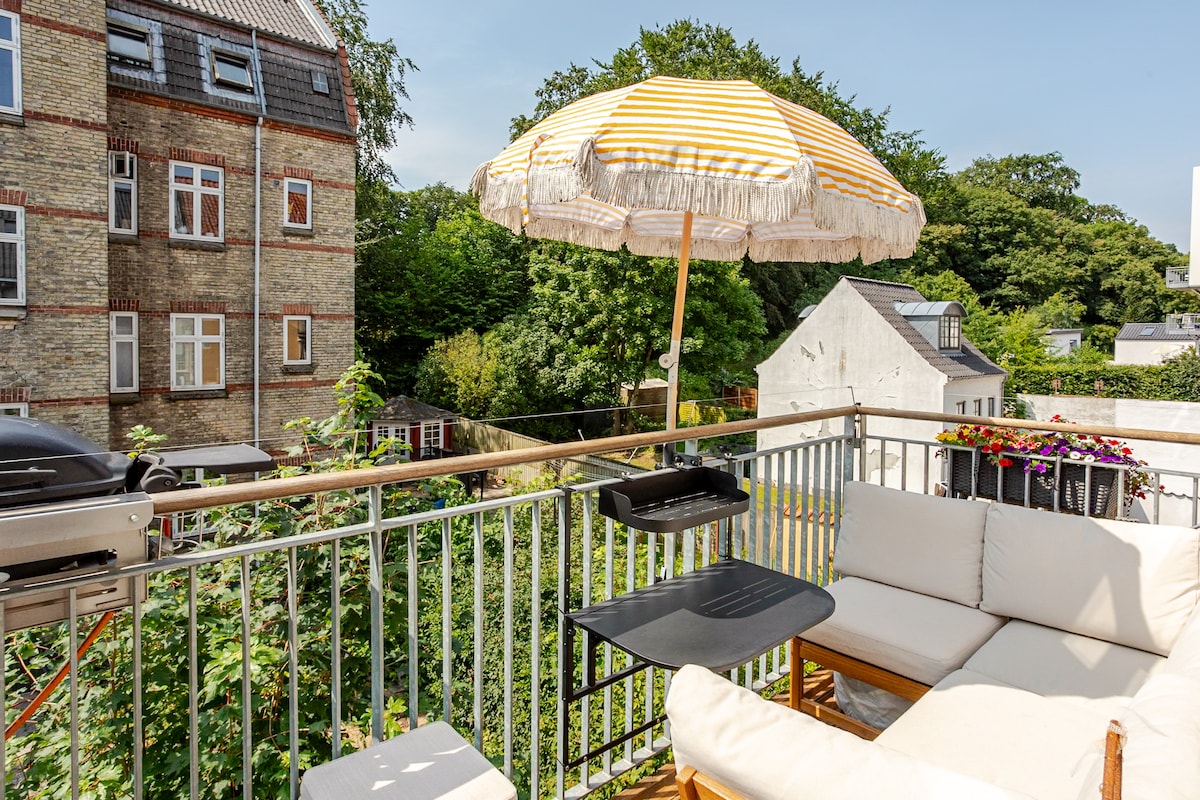 Penthouse im Herzen von Aarhus, mit Balkon🧸💛