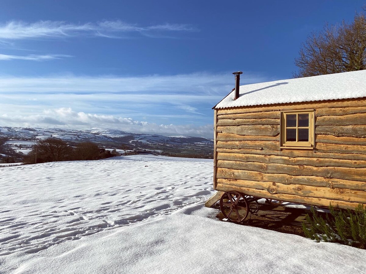 Diese Lage bietet eine herrliche Aussicht auf Snowdonia. (Bitte beachte, dass sowohl die Hütten mit Stall als auch die Scheune für deine alleinige Nutzung bestimmt sind, unabhängig davon, ob du als Paar oder als Gruppe von 6 Personen anreist.) Die Hirtenhütten sind die Schlafzimmer, und der Stall und die Scheune sind deine Unterkunft für den Tag. Die Schäferhütte mit einer Seitentür bietet Platz für 4 Personen und verfügt über ein Etagenbett an einem Ende und ein Doppelbett am anderen Ende. Die Hütte mit dem „spitzen“ Dach verfügt über ein Doppelbett und bietet Platz für 2 Personen. Beide verfügen über Holzöfen und Elektrizität (Lampen und Steckdosen).