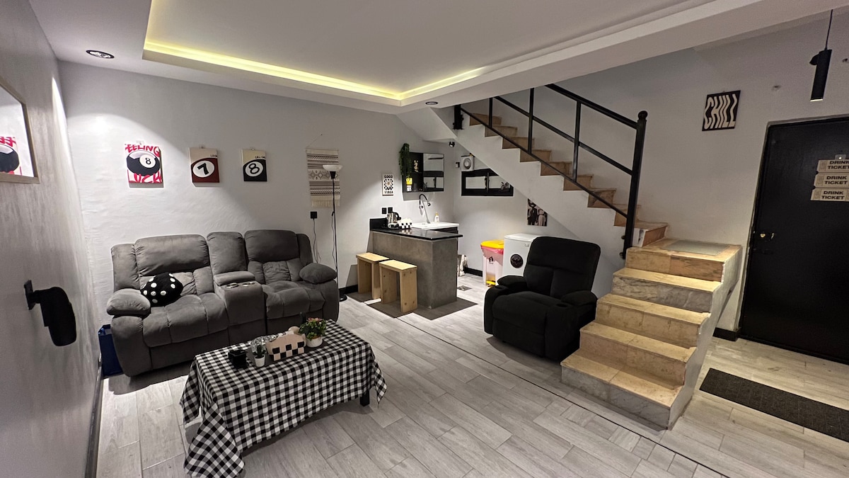 Eine elegante und ruhige Wohnung, ausgestattet mit einem schnellen Internet-Netzwerk, bestehend aus einer geräumigen Lounge und einem Schlafzimmer und einer Kaffeeecke, mit uneingeschränktem Zugang und Privatsphäre. Es gibt einen privaten Eingang, in der Nähe aller Dienstleistungen. Es ist 15 Minuten vom Flughafen, 5 Minuten von der Asir Mall und 3 Minuten vom Entbindungskrankenhaus entfernt, und es gibt einen Wäsche- und Lieferservice.