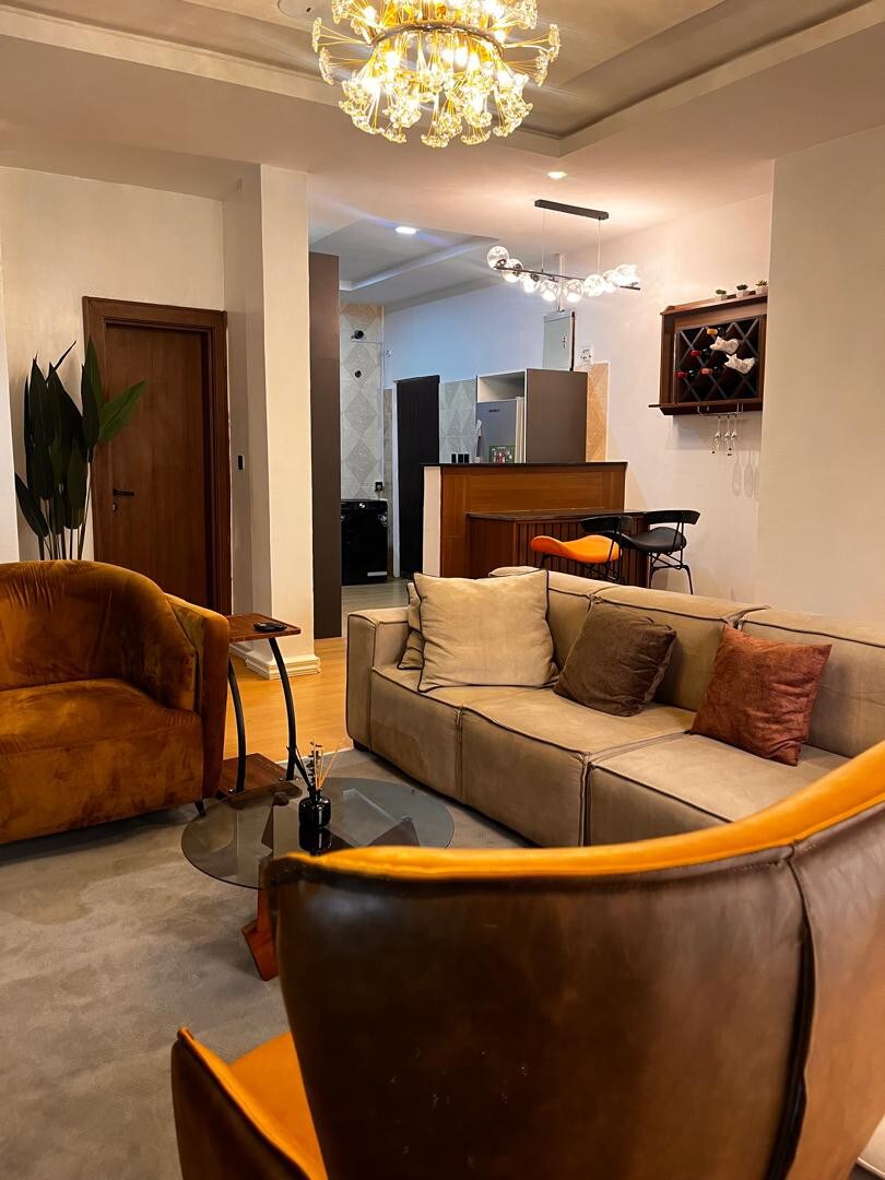 Genießen Sie ein stilvolles Erlebnis in diesem zentral gelegenen Apartment. Eine 2-Zimmer-Wohnung mit Funktionen wie PlayStation 5 & neuesten Spielen auf Anfrage, Godfather Clock Antique Clock, 65 Zoll TV. Wir bieten auch strenge Sicherheit, 24/7 Überwachung, 24/7 Strom mit Backup Generator, WLAN, kostenlose Parkplätze, die den Bewohnern ein Gefühl der Sicherheit und des Seelenfriedens geben. Wir haben die besten Einkaufszentren und Clubs in der Nähe wie 4U Supermarkt, H-Medix, Pay Greens Supermarkt usw.