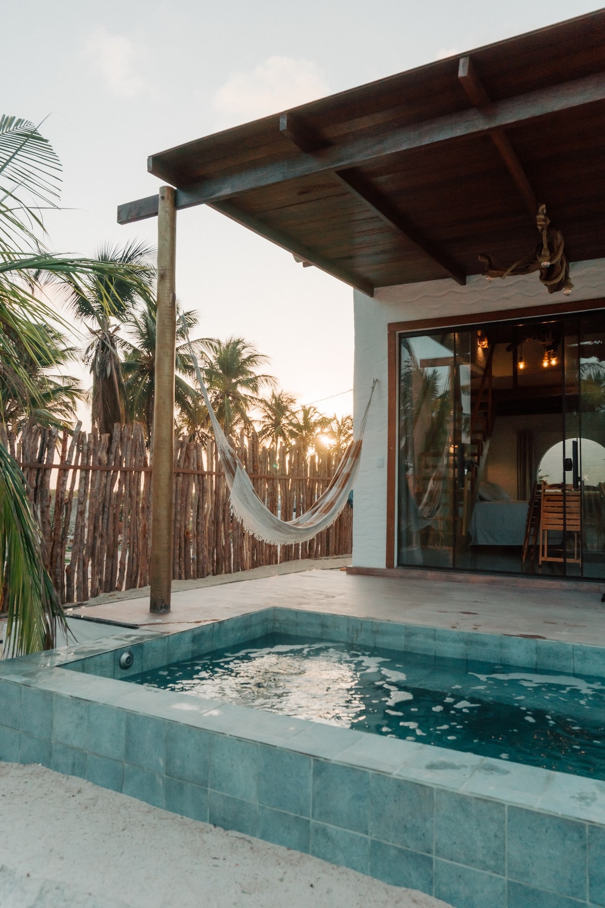 Desconecte-se do ritmo acelerado e sinta a pulsação da natureza em Arpoeiras. Uma caminhada de apenas 1 minuto até o mar, nosso chalé é um convite ao descanso profundo. Imagine preparar um café em uma cozinha completa, mergulhar em uma piscina privativa e, ao final do dia, relaxar em um banho sob o brilho das estrelas. Um espaço moderno onde o luxo é o silêncio e a conexão com o que importa.