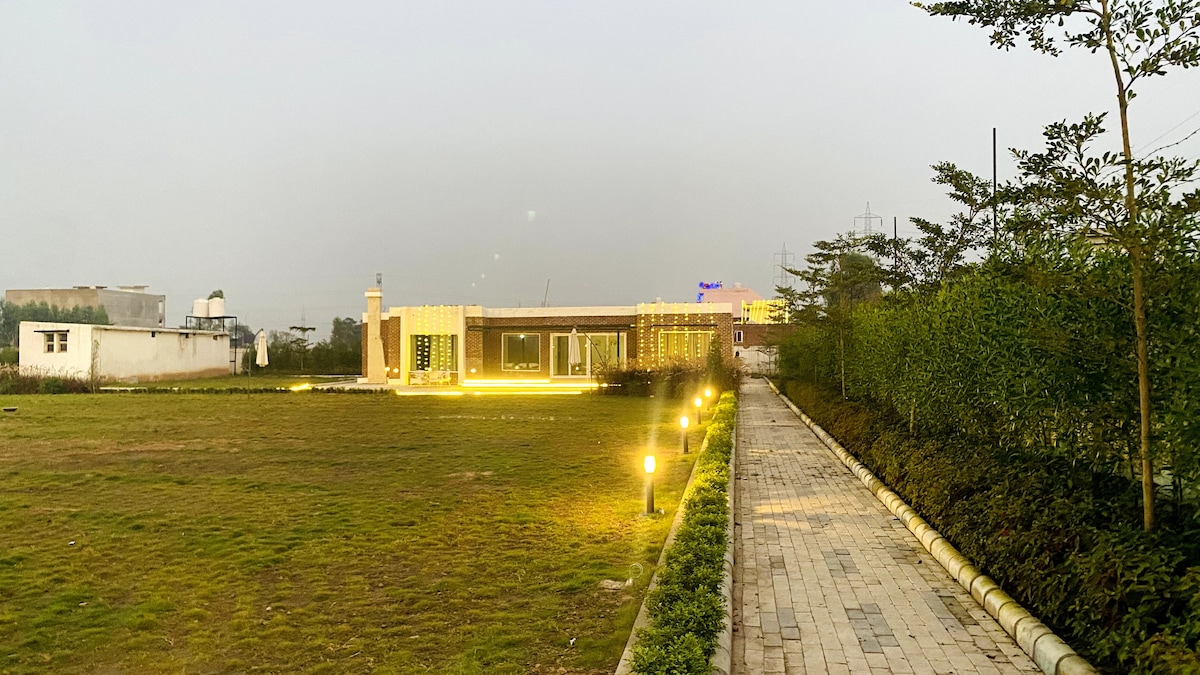 Diese Villa befindet sich auf einem Bauernhof in Kurukshetra und trägt den treffenden Namen The Hideout Farms, da sie exklusiv und abseits der Menschenmassen liegt. Es ist ein heller und glücklicher Raum, in dem du dich und deine Lieben für etwas Zeit miteinander gönnen möchtest. Der Pool wird dich den ganzen Tag herumplatzen lassen, und der Rasen ist riesig, also würden auch einige Spiele im Freien Spaß machen! Erlebe eine einzigartige Farm mit Bullock-Karrenfahrten, Traktorfahrten und landwirtschaftlichen Aktivitäten.