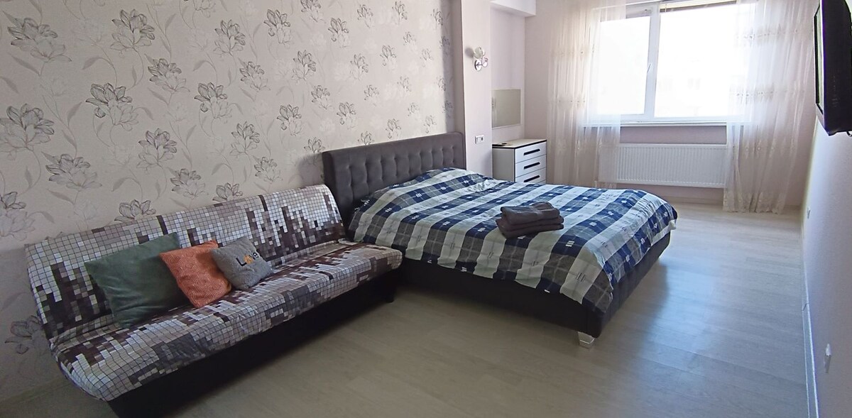 Neue Luxus-Wohnung in einer neuen und ruhigen Wohngegend, im Stadtzentrum mit einzigartigem Panorama. Die Wohnung ist komfortabel und geräumig, 68 m², separate Schlafzimmer, Flur, Küche und Badezimmer mit einer großen Badewanne. Die Wohnung hat ein besonderes Design mit hochwertigen Möbeln und Haushaltsgeräten. Gegend mit entwickelter Infrastruktur! In unmittelbarer Nähe findest du: Einkaufs- und Sozialzentren, Geschäfte, Apotheken, Restaurants, Grünflächen, Fitnesscenter, Zugang zu öffentlichen Verkehrsmitteln
