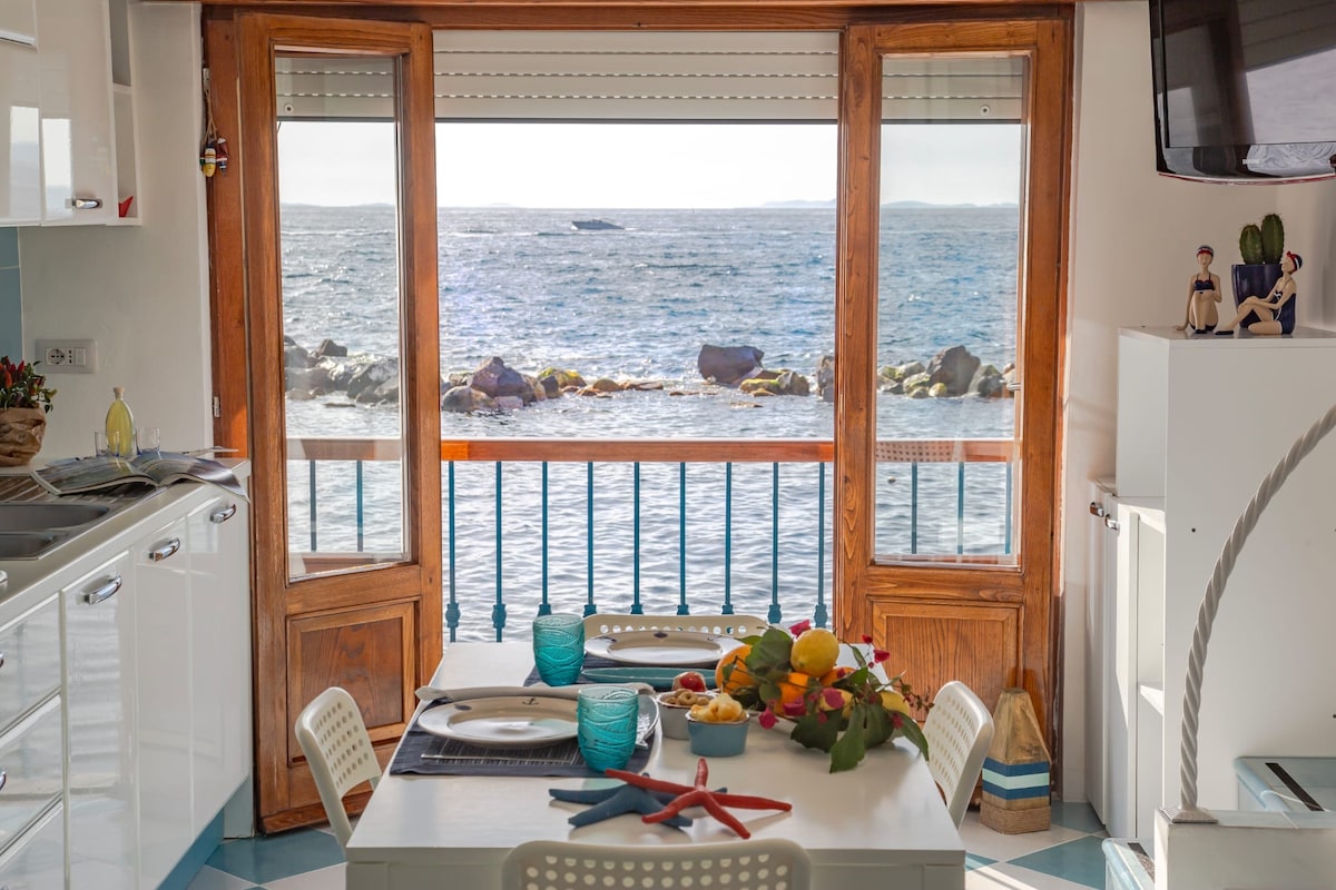 Ein geheimes Juwel an den Klippen von Posillipo mit atemberaubendem Blick auf den Golf von Neapel. Genieße einen Privatstrand, Liegestühle, Kanus und ein verträumtes Wohnzimmer über dem Wasser. Nur wenige Minuten von der Stadt entfernt, aber völlig friedlich. Erreiche es über einen Aufzug durch den Felsen oder eine charmante alte Treppe. Perfekt für diejenigen, die Schönheit, Privatsphäre und unvergessliche Sonnenaufgänge suchen.