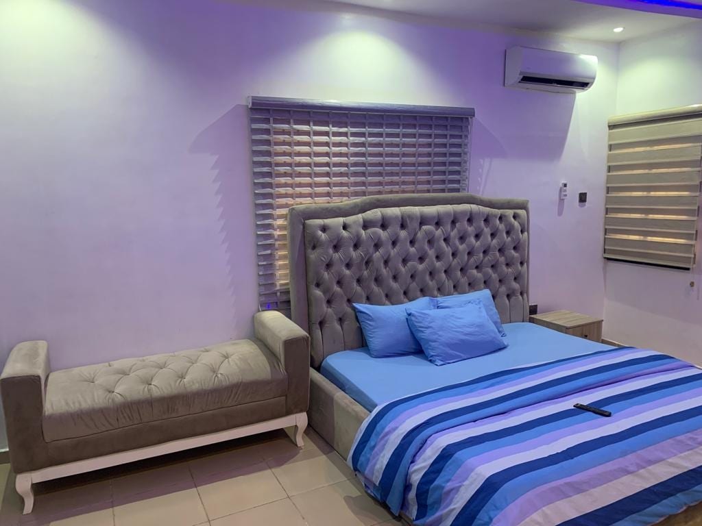 Preis für Langzeitaufenthalt, Glasfaser-Internet-WLAN, drei (3) Klimaanlagen, Warmwasser, Solar-Wechselrichter-System, gesicherte, große Betten, privater Garten, privater Parkplatz, geräumige Küche, Kinderspielplatz, Smart-TV, Bäume/Wald in der Nähe, um frische Luft zu tanken und vieles mehr. Entspanne dich mit der ganzen Familie an diesem ruhigen Ort. Geeigneter Arbeitsplatz/Schreibtisch vorhanden. Stromeinheiten im Wert von 10.000 NGN, die beim Check-in zur Verfügung gestellt werden, danach ist der Gast für die Stromkosten verantwortlich.