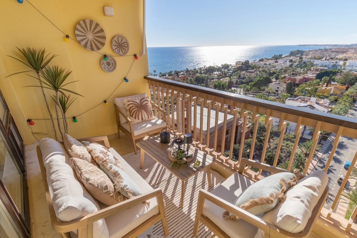 Entspanne dich in diesem ruhigen und stilvollen Raum. Du kannst einen herrlichen Blick auf das Mittelmeer und wunderschöne Sonnenuntergänge genießen. Die Wohnung befindet sich etwa 300 Meter vom Strand entfernt und liegt ganz in der Nähe von Unterhaltungsmöglichkeiten wie dem 501-Komplex oder dem Yachthafen. Es ist auch von Bars und Restaurants umgeben. Darüber hinaus verfügt das Gebäude über einen Gemeinschaftspool und Gartenbereiche für Kinder.