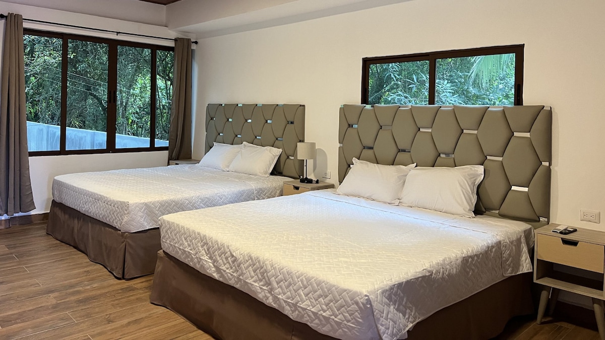 Familienzimmer 1 Doppelbett und 1 Hütte in einem gemütlichen Berghotel in der Mitte von Kaffeeplantagen auf 1.350 Metern Höhe in der Sierra Apaneca Ilamatepec. 5 Minuten von Ataco und Apaneca entfernt.