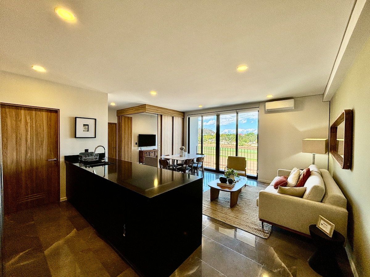 Dieses 2-Schlafzimmer- und 2-Badezimmer-Apartment liegt auf einem Hügel und bietet atemberaubende Ausblicke auf den Chapala-See. Das offene Layout umfasst ein geräumiges Wohnzimmer, eine voll ausgestattete Küche und einen Wasch- und Trockenraum. Treten Sie auf den privaten Balkon mit Seeblick, ausgestattet mit Sitzgelegenheiten für Morgenkaffee oder Sonnenuntergänge. Beide Schlafzimmer verfügen über Smart-TVs für Ihr Entertainment.