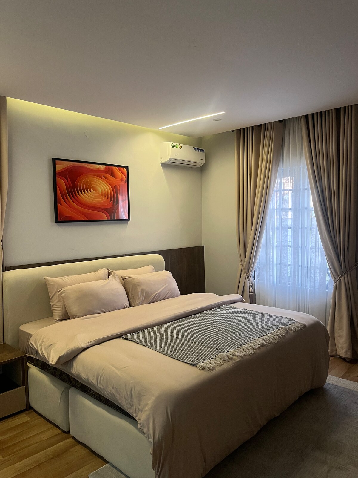 Genieße einen wunderschön eingerichteten Rückzugsort mit 3 Schlafzimmern in einem ruhigen, stillen Teil der Victoria Island. Mit 24/7-Strom, Top-Sicherheit, weicher Bettwäsche und einem massiven 100-Zoll-Fernseher ist Komfort einfach. Die geräumige Gemeinschaftsküche ist perfekt zum Kochen mit Familie oder Freunden, und die hellen, luftigen Innenräume sorgen für einen ruhigen Aufenthalt, den du nie bereuen wirst.