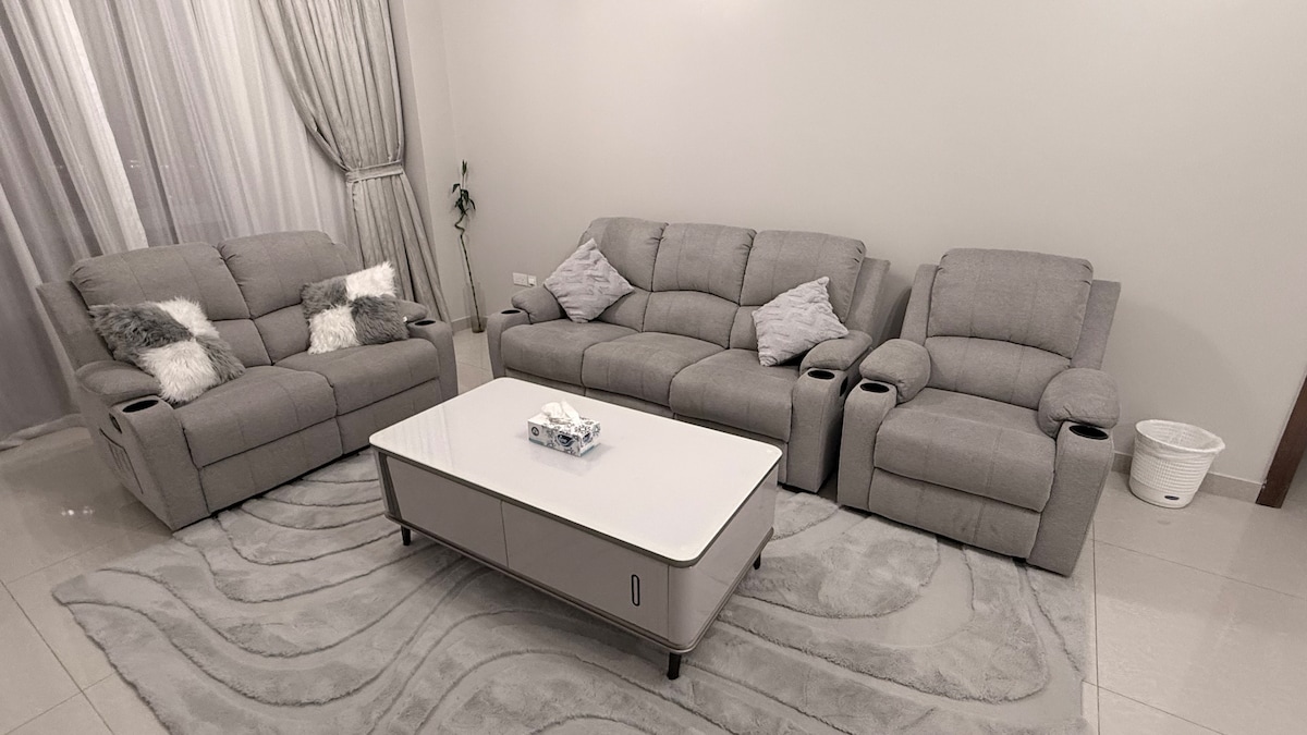 This stylish apartment features an open-plan layout, modern decor, and floor-to-ceiling windows with stunning city views. Located just a few minutes from Mall of Muscat, City centre Seeb, Shifa hospital, Nesto Hypermarket, Boulevard mall, Gym and Novo cinemas as well as surrounded by top-rated restaurants and shops. Have fun with the whole family at this stylish place.