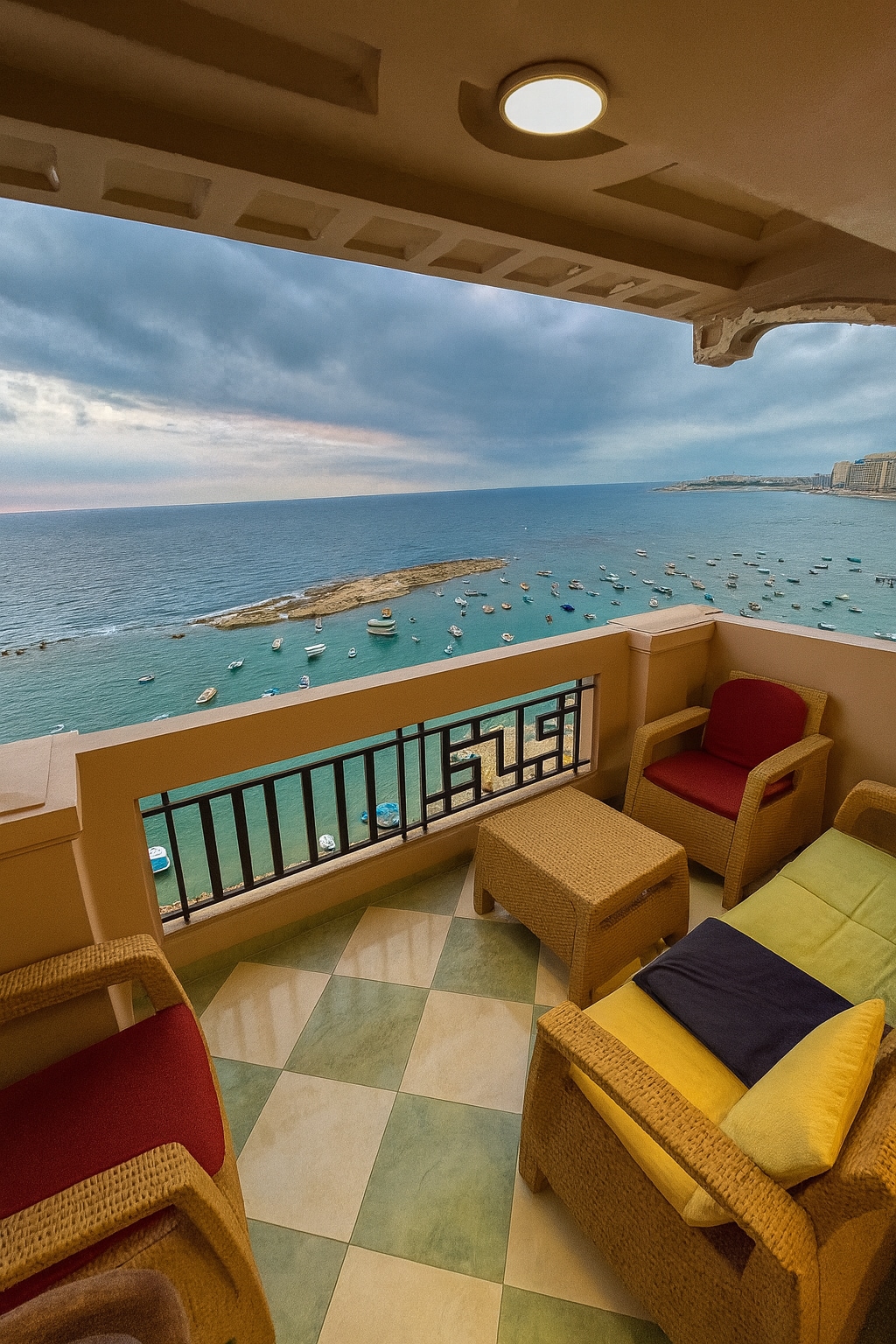 Your Luxurious 18th-Floor Mediterranean Getaway in Alexandria! 🌊🏖️ Imagine waking up to panoramic sea views from every corner of your apartment – even from your bed! Designed to maximize your sea experience, this spacious apartment is perfect for families. 3 Air condition bedrooms, each with two 120 cm beds. dining, Reception and living room offers breathtaking sea views to the west, North and East, perfect for enjoying the fresh, cool breeze, and ideal for soaking in the warm sun.
