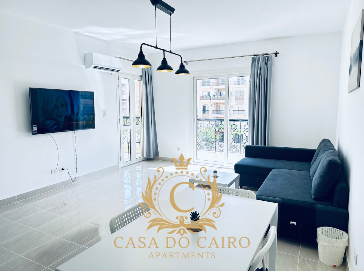 Kick back and relax in this calm, stylish space. An ENTIRE APARTMENT with an airy large terrace, situated in beautiful rehab city which is located 10 minutes away from Heliopolis and Nasr City, on the Cairo Suez road. Rooms are newly furnished, air conditioned in the bedrooms well DESIGNED , have all amenities, SAFE , super CLEAN and QUIET . . Coffee shops, restaurants, supermarkets,and pharmacies are all nearby. It's 20 minutes to Cairo international airport.