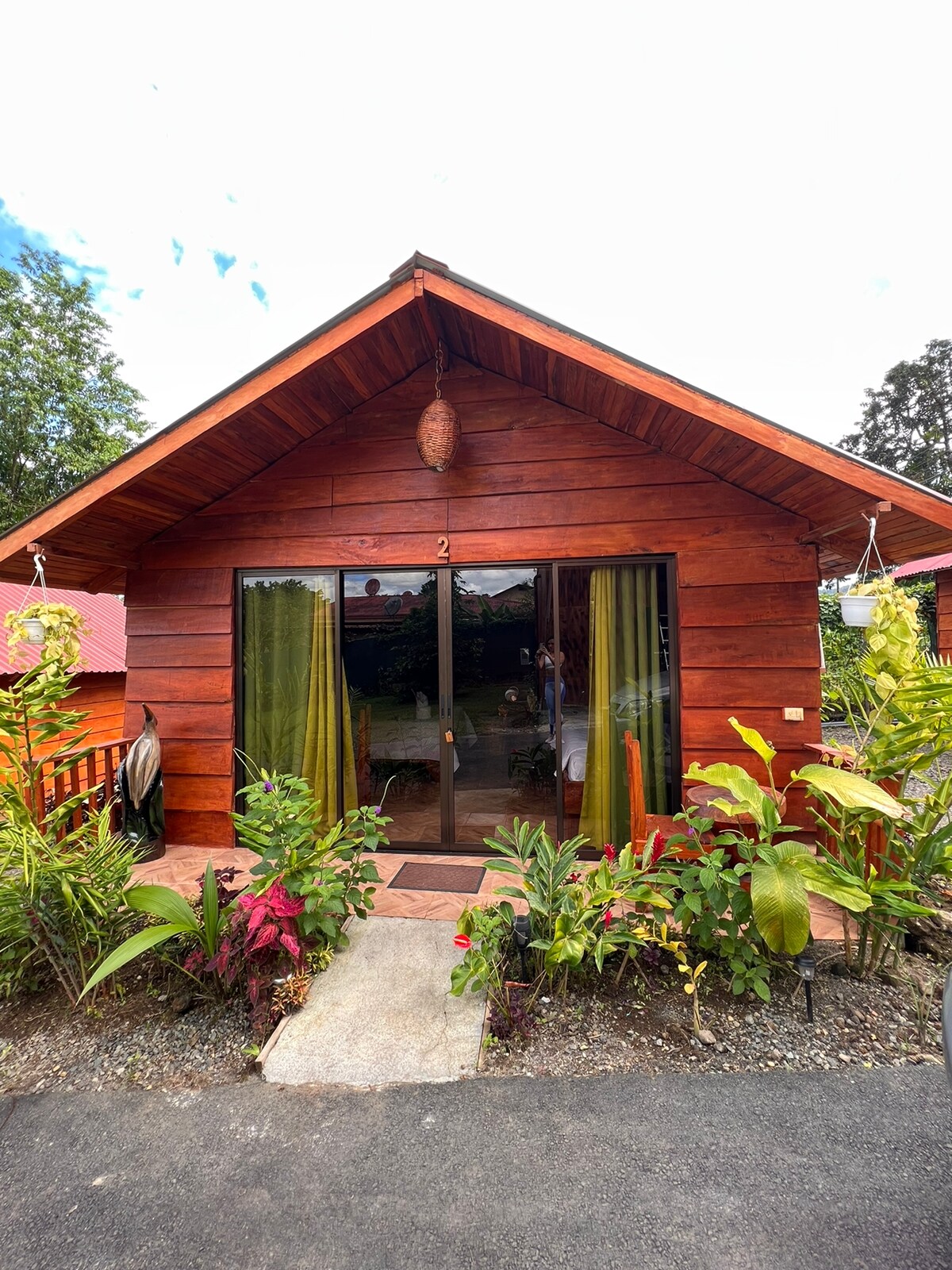 Entspannen Sie sich mit der ganzen Familie in dieser Unterkunft, in der man Ruhe atmen kann. Beobachten Sie Tukane von zwei Arten, Oropendulas mit ihren Nestern, Loras, Perlhühner, Pfeilfrösche und viele andere Vögel. Entspannen Sie sich mit dem Geräusch des Flusses, der direkt vor der Hütte vorbeifließt. Wir sind 12 Minuten vom Eingang des Nationalparks Volcán Tenorio entfernt. Wir erwarten Sie