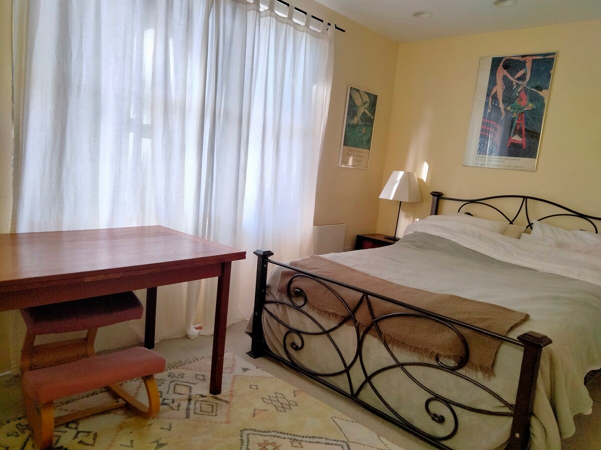 Genieße Komfort & Ruhe im Herzen eines der Lieblingsviertel von Berkeley! Nur wenige Schritte zu Cafés und Märkten, alles, was du brauchst, ist nur einen Block entfernt - BART 10 Gehminuten, Buslinien noch näher gehen zu UC und in der ganzen Stadt! Wirklich das Beste, was North Berkeley zu bieten hat; privater Garten, Sauna, Außendusche und Schlafmöglichkeiten für bis zu 4 Personen mit einem Queensize-Bett im Loft und einem extra bequemen Queensize-Ausziehbett im Wohnzimmer. *Treppen sind möglicherweise nicht für Personen mit eingeschränkter Mobilität, kleine Kinder oder Haustiere geeignet.