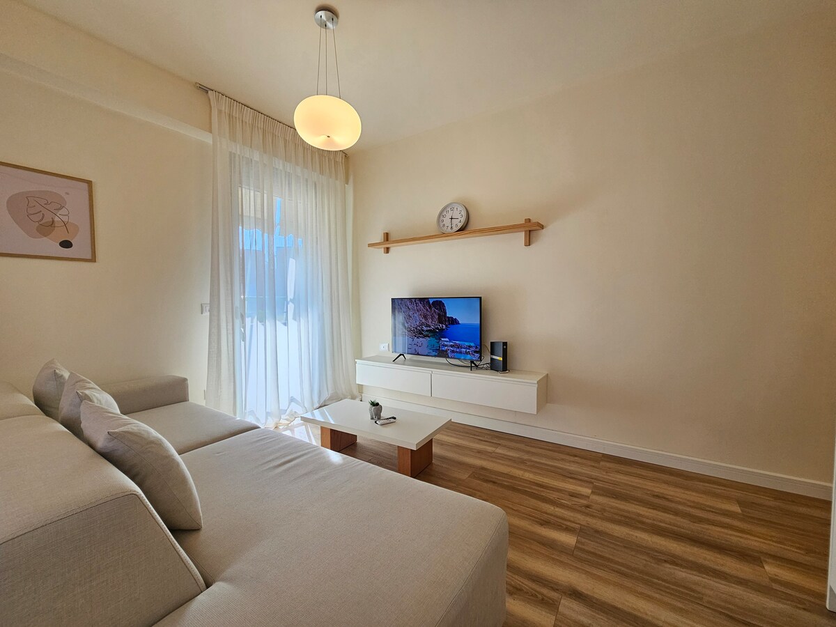 Neu eingerichtete Sonderwohnung im Zentrum von Tirana (5 Gehminuten vom Skanderbeg-Platz entfernt). Genieße während deines Besuchs einen ruhigen, modernen und entspannenden Raum Wohnung im 4. Stock und es gibt keinen Aufzug, also bitte beachte das. Wir können bei Taschen helfen. Pool, Fitnessraum, Sauna extra 2 Gehminuten vom Black Diamond Hotel entfernt Die Möbel und das Design waren auf maximalen Komfort ausgerichtet Die Gegend ist sicher und ruhig, 8 Gehminuten vom Zentrum und den wichtigsten öffentlichen Verkehrsmitteln und Shuttles zum Flughafen oder zu jedem Hauptort entfernt