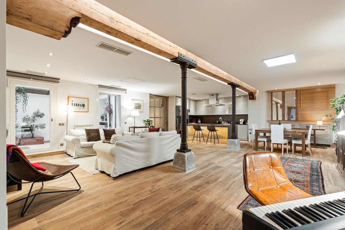 Elegante Loft-Wohnung im Herzen der Stadt, nur wenige Meter von der emblematischen Puerta del Sol, der Plaza Mayor, El Rastro und anderen wichtigen Sehenswürdigkeiten entfernt. Es verfügt über alle Annehmlichkeiten: Kingsize-Bett (180 x 200 cm), WLAN, Smart-TV und eine voll ausgestattete Küche. Sehr gut angebunden, mit zwei U-Bahn-Linien, die weniger als 5 Gehminuten entfernt sind. Eine Vielzahl von Restaurants und trendigen Orten in der Gegend. Supermarkt rund um die Uhr geöffnet, 3 Gehminuten von der Wohnung entfernt.