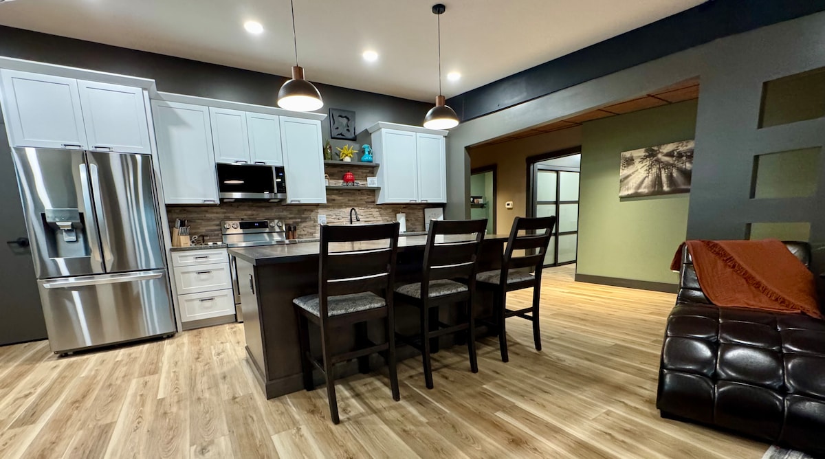 Willkommen in deinem industriell inspirierten Zuhause Tritt ein in dieses geräumige und stilvolle 1.500 sq ft große Airbnb, das mit einem industriellen Flair und allen modernen Annehmlichkeiten, die du brauchst, gestaltet wurde. Egal, ob du geschäftlich oder privat unterwegs bist, dieses brandneue Gebäude aus dem Jahr 2025 bietet einen einzigartigen und unvergesslichen Aufenthalt. Einzigartige bewegungsaktivierte Treppe, die zu einem privaten, offenen Loft führt High-Speed-Internet, perfekt zum Streamen, Arbeiten oder um in Verbindung zu bleiben Voll ausgestattet mit modernen Annehmlichkeiten, damit du dich wie zuhause fühlst
