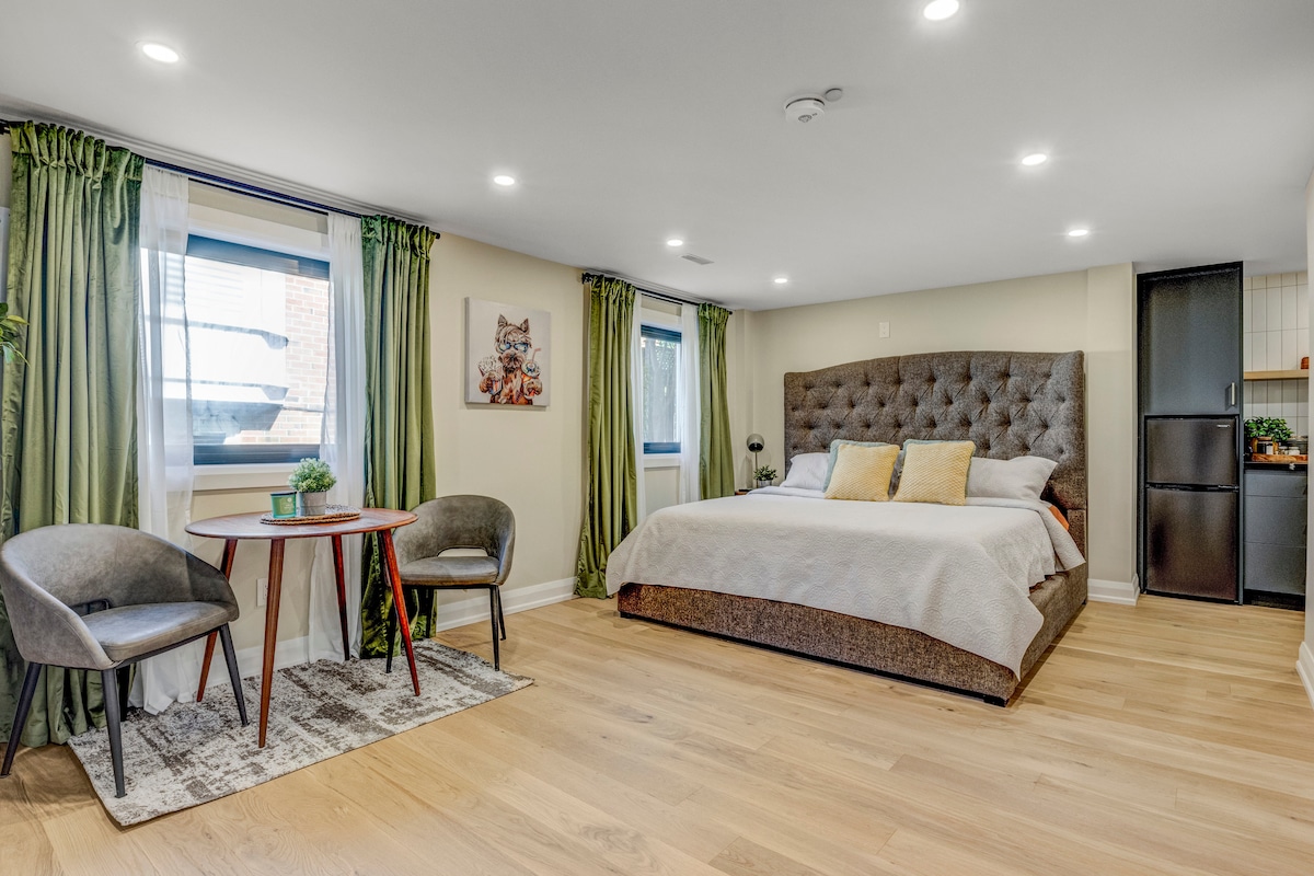 Willkommen in dieser gemütlichen Junggesellen-Suite — ein elegant gestalteter Raum, der sich perfekt für Alleinreisende oder Paare eignet. Ruhe dich in einem luxuriösen Kingsize-Bett aus und genieße den Komfort einer gut ausgestatteten Küchenzeile und einer Waschmaschine in der Unterkunft. Das Hotel liegt nur 10 Minuten vom Flughafen Pearson und 20 Minuten von der Innenstadt von Toronto entfernt und ist ein idealer Ausgangspunkt für Arbeit oder Freizeit. Ein privater Eingang und ein durchdachtes Layout sorgen für einen komfortablen, unabhängigen Aufenthalt.