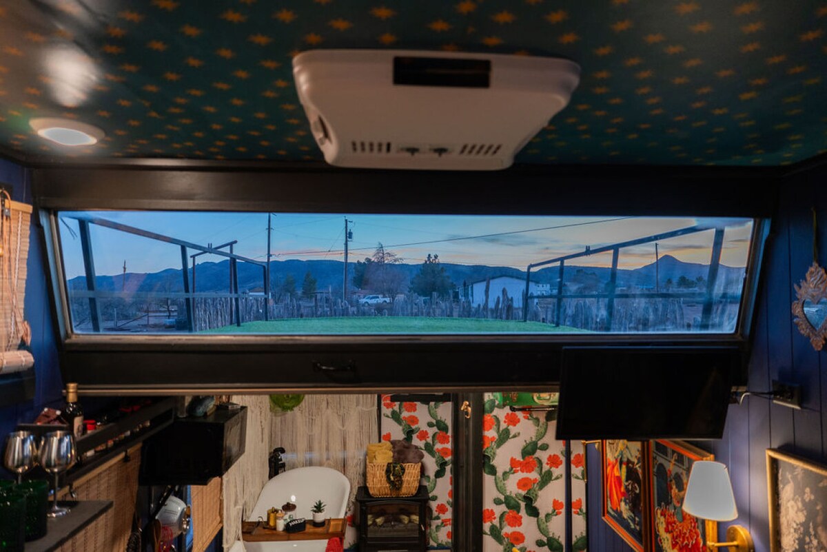 Ein Teil Glamping, alles Teil Sassy. Das McIntrye mit fast 220 Quadratfuß mit seiner großen Badewanne, Bademänteln und Bio-Toilettenartikeln ist alles andere als grob. Diese auf Erwachsene ausgerichtete Einheit ist mit einem Queensize-Bett, Bio-Satin-Bettwäsche, Samtbettdecke, Lesesessel und Barwagen ausgestattet. Zur weiteren Ausstattung gehören eine Mikrowelle, ein Kühlschrank, ein Plattenspieler, Vintage-Spiele, Bücher und vieles mehr. Eine perfekte Möglichkeit, eine Verbindung zu historischem Ranchland zu kombinieren und gleichzeitig alle Annehmlichkeiten eines komfortablen Aufenthalts zu genießen.