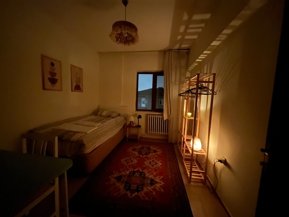 Das Haus ist alt. Es gibt Türschlösser in den Zimmern. 24 Stunden heißes Wasser, Highspeed-WLAN. Gemeinschaftsbereich WC, Badezimmer und Küche. Denk daran, dies ist ein Privatzimmer. Ich versuche, mein Bestes zu geben. Außerdem kann ich dich zu jeder Tageszeit nach Hause bringen. Du kannst Wäsche waschen und kochen. Wenn das Zimmer verfügbar ist, kannst du das Haus jederzeit betreten. Schreib mir einfach eine SMS. In den letzten 100 Metern des Hauses gibt es einen steilen Hang. Diejenigen, die vier für den Standort geben, senden bitte keine Buchungsanfrage. Danke. @ ankaraair0623