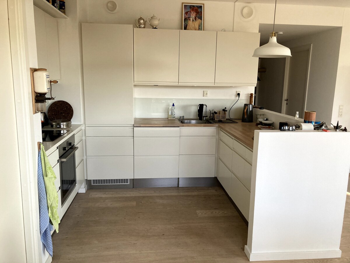Perfekt gelegene, komfortable und moderne Wohnung. Du wohnst mitten im Zentrum von Kopenhagen in einer sehr ruhigen Straße. Zwei Balkone und ein Blick auf den Tivoli und das Rathaus. Die Wohnung liegt im 5. Stock und verfügt über alle Annehmlichkeiten und Sonne von morgens bis abends. :-) Sie verfügt über einen Aufzug und einen privaten Parkplatz im Untergeschoss. Alle Sehenswürdigkeiten von Kopenhagen sind in Reichweite, und so ist auch die Möglichkeit, im Hafen von „Bølgen“ zu schwimmen.