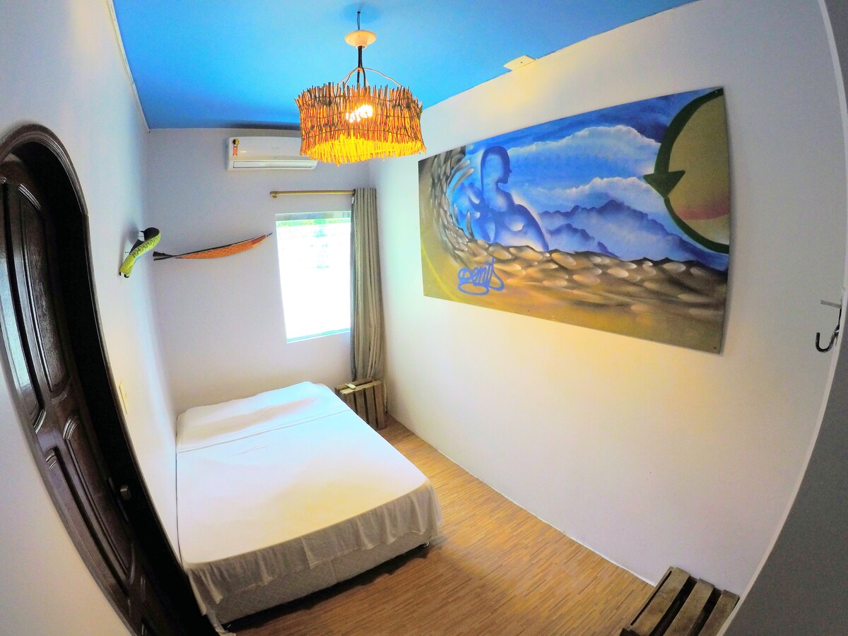 La casa se encuentra a 5 minutos del aeropuerto en motocarro, la habitaciòn es muy iluminada, tiene puerta y ventanas , baño propio. tiene patio para salir a fumar, para llegar a la casa tiene que caminar 2 cuadras de tierra firme, recomiendo lleven zapatos y ropa especial para la lluvia.