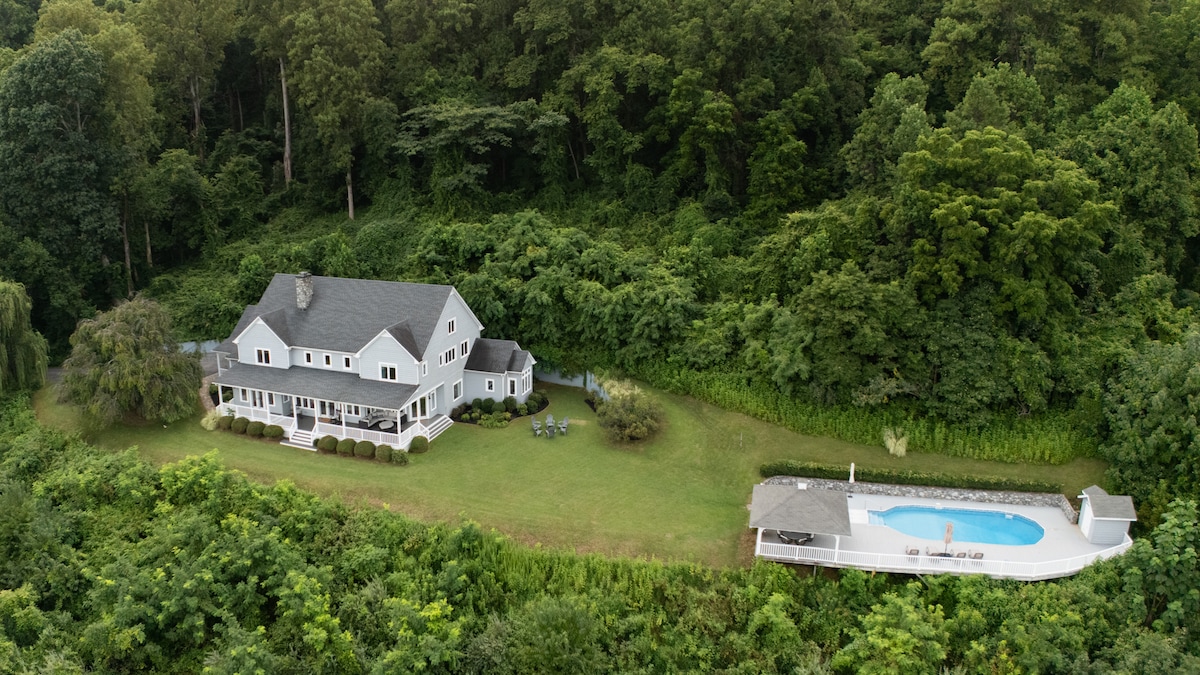 Blick auf Bauernhaus in den Blue Ridge mit Pool