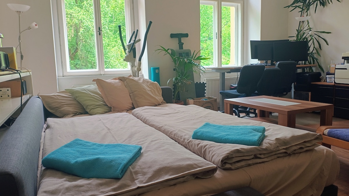 Genieße deinen Besuch in Prag wie ein:e Einheimische:r. Wenn du eine komfortable Wohnung in einem Innenhof mit Garten suchst, die voll ausgestattet und liebevoll eingerichtet ist, und du dich wie bei Freunden fühlen möchtest, anstatt in einem unpersönlichen Airbnb zu wohnen, dann zögere nicht, eine Reservierung vorzunehmen. Das Viertel Smíchov ist voller Parks, Cafés und Pubs, mit dem Fluss in der Nähe. Das Stadtzentrum ist 15 Minuten mit der Straßenbahn, der U-Bahn oder zu Fuß entfernt. Bitte kontaktiere mich bei Fragen, ich beantworte sie dir gerne.