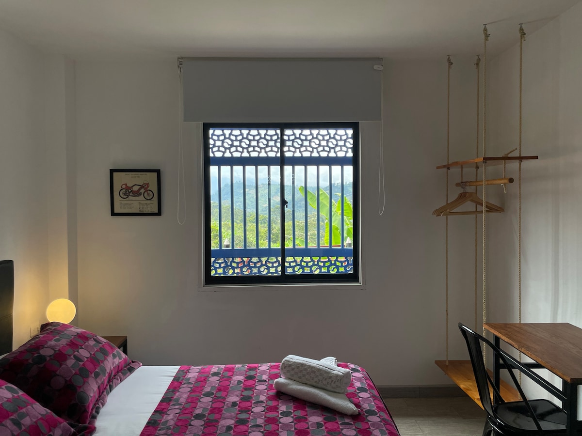 Monteverde Jardin is an experience in the mountains, a magical place surrounded by the vibrant colors of this beautiful land. Come and experience waking up to the enchanting view of the Citará mountains, the rich coffee and banana plantations and the cheerful melody of birds. Although this is the perfect place for people looking to get away from the hecticness of city life, it is also ideal for those who wish to work remotely in a relaxing and quiet atmosphere.