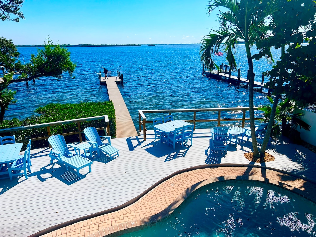Unterkunft am Wasser mit beheiztem Pool 2 Mi von den Stränden entfernt