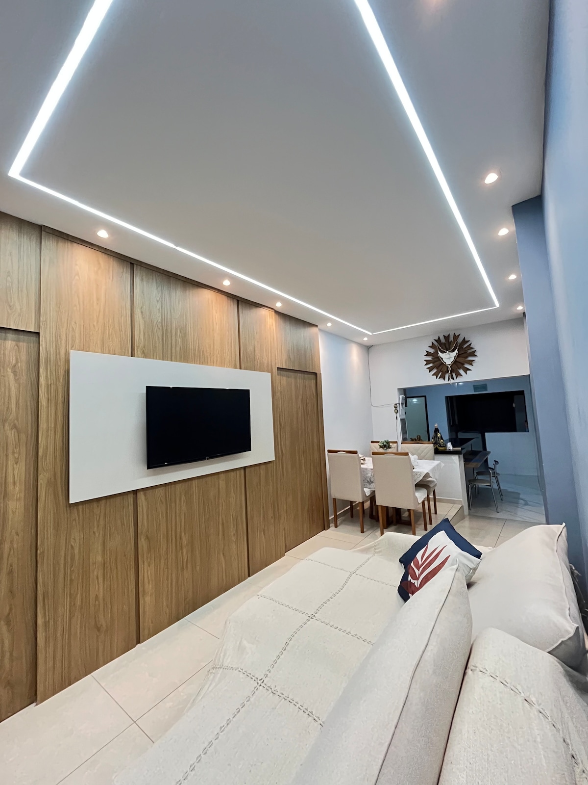 BITTE BEACHTE: Gib die genaue Anzahl der Gäste ein, die bleiben werden, da sich der Tagespreis je nach Betrag ändert. Neues und komfortables Haus, nur 200 Meter vom Nationalheiligtum entfernt. Sie verfügt über 3 Schlafzimmer, eines davon mit eigenem Bad. Alle mit einer Klimaanlage. Sie verfügt über eine Küche mit Herd, einen Kühlschrank, eine Mikrowelle und alle notwendigen Utensilien. Neben einem Freizeitbereich mit Grill. Garagem für 3 Autos. Wir bieten Bettwäsche, Decke, Kissen und Handtuch.