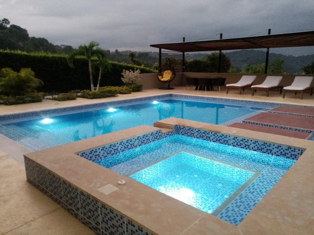 Casa Palo de Agua, nur 5 Minuten vom Zentrum von Anapoima über den Triumph entfernt. Jedes Detail durchdacht in den Komfort und die Freude des Gastes, um einen ruhigen, gemütlichen Ort zu genießen, umgeben von Natur und frischer Luft, um sich vom Lärm und der Routine zu trennen. Wir haben einen wunderbaren Pool mit Whirlpool und einen spektakulären Blick auf die Berge, um uns vollständig zu entspannen. Genieße es mit deiner Familie oder Freunden. Alle Zimmer mit Tür und renoviert.