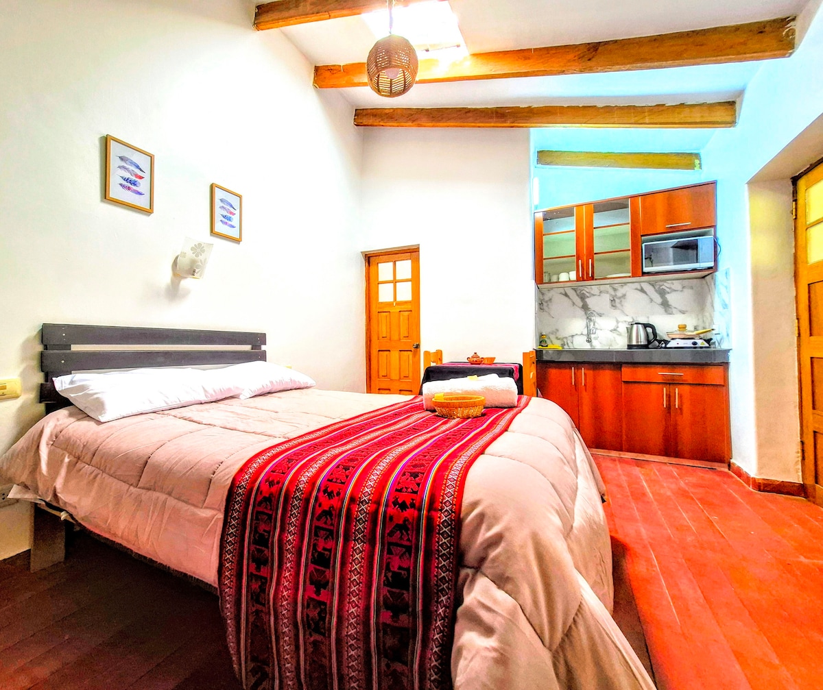 15 Minuten vom Hauptplatz von Ollantaytambo entfernt befindet sich die Ruhehütte am Fuß des Apu Pinkuylluna. Dieses komfortable und geräumige Zimmer bietet Platz für bis zu 4 Personen. Wir lieben es, Paare, Familien und Gruppen von Freunden zu empfangen und unsere besten Tipps und versteckten Orte dieses magischen Ortes mit ihnen zu teilen, damit sie sich wie zu Hause fühlen können. Wir sind bereit, deine Fragen zu beantworten, unsere zusätzlichen Dienstleistungen zu teilen und dich mit vielen guten Schwingungen willkommen zu heißen :).
