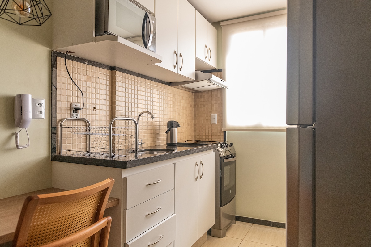 Geräumige Umgebung, mit einer voll ausgestatteten Küche, die die Zubereitung von Mahlzeiten ermöglicht, obere Etage mit Panoramablick, komplette Wohnanlage: mit 24-Stunden-Fitnessraum, Schwimmbad, Sauna, Restaurant, Wäscherei, kleinem Supermarkt, Schönheitssalon, kostenlosen Parkplätzen und vielem mehr. Der Gast hat an diesem Ort mit ausgezeichneter Lage einfachen Zugang zu allem, was er braucht. Es liegt in der Nähe der besten Restaurants, Bars, Apotheken, Krankenhäuser/Kliniken und dem Areião Park.