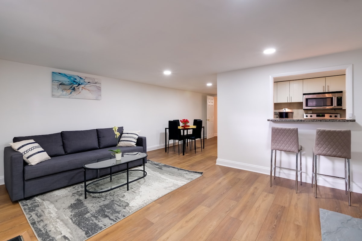 Neu renovierte, geräumige und moderne Wohnung mit 1 Schlafzimmer/1 Badezimmer auf Gartenebene im besten Block in Adams Morgan. Perfekt für Familien, Alleinreisende oder Geschäftsreisende. Unsere Wohnung liegt am Rande des Rock Creek Park im historischen Viertel Kalorama Triangle und ist ein ruhiger Zufluchtsort, nur wenige Blocks vom Zentrum von Adams Morgan und einen kurzen Spaziergang vom Dupont Circle, der U-Bahn-Station Woodley Park, der U Street usw. entfernt. Voll ausgestattete Küche mit neuen Geräten, TV mit Netflix und allem, was du für einen schnellen Besuch oder längeren Aufenthalt benötigst.