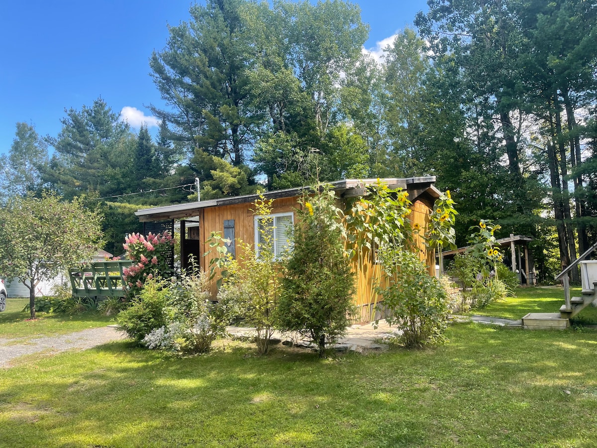 CITQ: 308387 Tiny house avec un look country. Magnifique chalet près du Mont Ham. Grand espace de vie extérieure avec spa, ainsi que toutes les commodités nécessaires à l'intérieur. Les soirs d'été, vous pouvez entendre les cloches des vaches et admirer les étoiles. Un petit ruisseau avec bassin naturel est accessible pour se rafraîchir. -Poêle à bois intérieur et extérieur. -Bois de chauffage à volonté sur place mais bois d'allumage à apporter. -1 lit queen, 2 lits simples et un divan lit