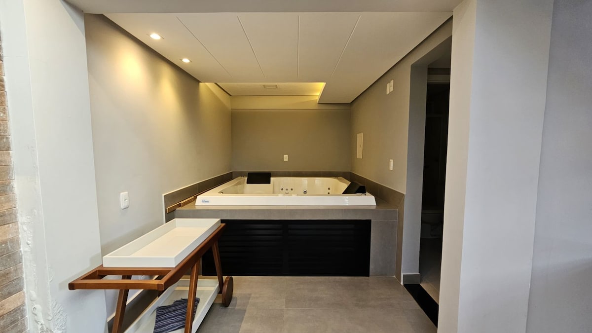Loft com jacuzzi, ar cond, cozinha e lavanderia.