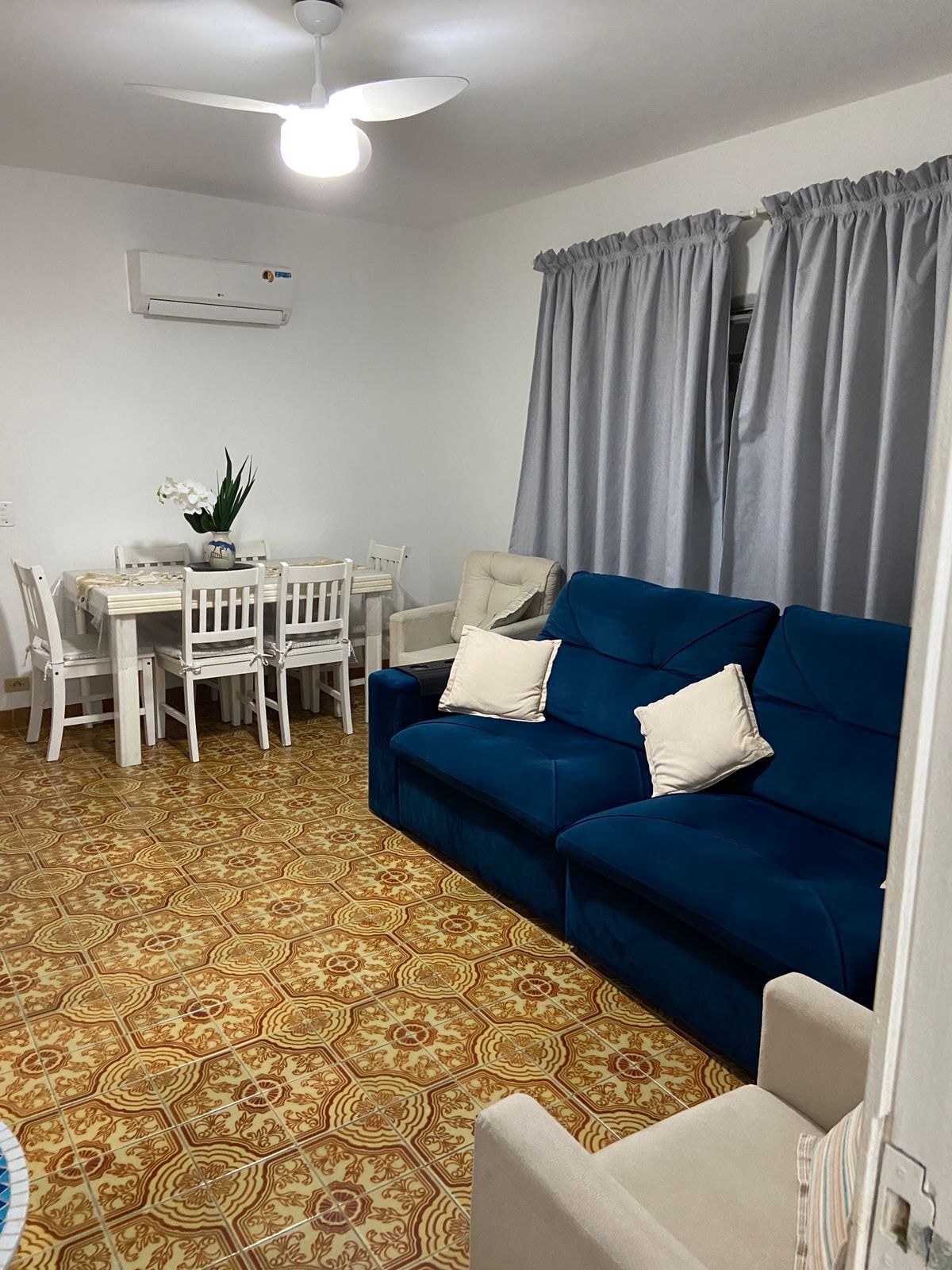 Wohnung am Strand, mit Meerblick! Vermietung für Familien, 🌟 2 Suiten + 1 Schlafzimmer und 1 Badezimmer. Klimaanlage in allen Zimmern, eine amerikanische Küche, die in das Wohnzimmer integriert ist, und ein verglaster Balkon mit 🌊 unglaublicher Aussicht. Wäscherei, 1 Parkplatz und eine professionelle Eismaschine stehen den Gästen zur Verfügung, ein großer Unterschied! Ruhiges Meer, ideal für Kinder. Eine warme und funktionale Atmosphäre. Keine Partys. Freizeitbereich aufgrund von Eigentumswohnungsregeln nicht verfügbar.