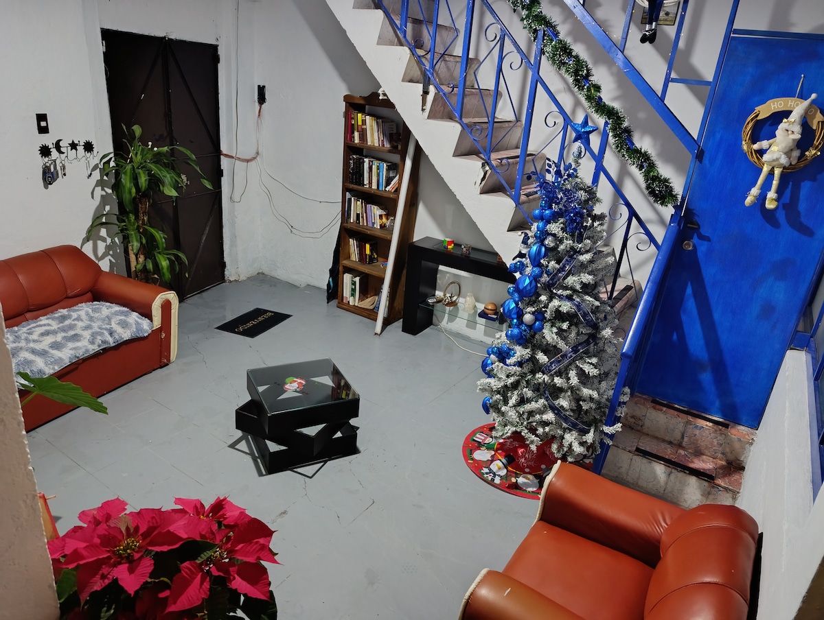 Einzigartiger und idealer Raum für dich Komplett unabhängig mit Doppelbett, Badezimmer, Kühlschrank und Küchenzeile. Es ist ideal für 1 oder 2 Personen, sehr heller Raum und mit WLAN ideal zum Arbeiten von zu Hause aus. Genieße den ganzen Tag den Fernseher mit Kabel-, Licht- und Warmwasser und mit guter Aussicht im Obergeschoss. Tolle Lage, mit Verkehrsmitteln, eine Straße vom Metrobus entfernt. Es liegt 20 Minuten vom Capu-Terminal, Oxxo 5 Gehminuten entfernt, Apotheken und dem Markt 3 Blocks entfernt.