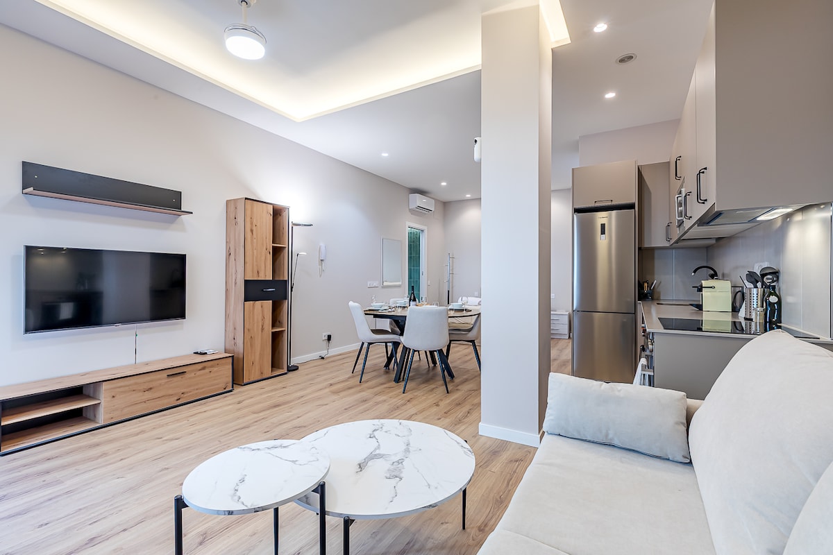 Die Designer-Wohnung im Viertel La Latina ist ein 160 m2 großes unterirdisches Juwel, das Platz für bis zu 4 Personen bietet. Mit 2 eleganten Schlafzimmern und einem separaten Büro mit einem zusätzlichen Schlafsofa. Obwohl es sich um eine Erdgeschosswohnung handelt, überrascht ihr renoviertes und modernes Interieur mit seinem offenen und luftigen Stil. Bitte beachte, dass das Licht aufgrund seiner Lage begrenzt ist und du keine Balkone oder große Fenster findest. Genieße TV über Chromecast. Bettwäsche und Handtücher werden bereitgestellt.