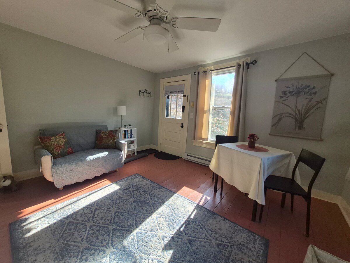 Entfliehe in unsere Gästesuite im Shenandoah Valley. Eingebettet auf 2,5 Hektar bietet unser charmantes Zuhause einen privaten Eingang und einen gemütlichen Rückzugsort. Betrete die Terrasse, um den atemberaubenden Sonnenaufgang über den Blue Ridge Mountains an unserer rauchlosen SoloStove-Feuerstelle zu erleben. Angrenzend an die Cross Keys Farm, umgeben vom Cross Keys Battlefield, erwarten dich Geschichte und Natur. Wir befinden uns in der Nähe von JMU, Massanutten Resort, Weingütern, Brauereien, Bauernhöfen und der Innenstadt von Harrisonburg.