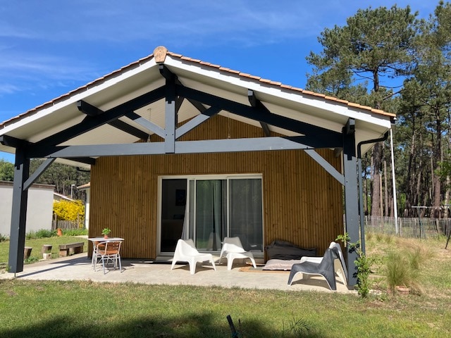 Unser Holzhaus in einer ruhigen Gegend am Waldrand besteht aus einem Schlafzimmer (Bett 160 x 200) mit Bad, einem zweiten Schlafzimmer (2 Betten 90 x 190) mit Bad; einem Zwischengeschoss mit 2 Betten (1 Bett 90 x 190 und 1 Bett 140 x 190) und einem Kinderbereich mit Spielzeug und Büchern. Ein Wohnzimmer, eine ausgestattete Küche, eine große überdachte Terrasse, eine Plancha, um Ihren Urlaub mit der Familie oder mit Freunden zu genießen. Sie können den ca. 400 m2 großen, bepflanzten und eingezäunten Garten genießen. Privater Parkplatz