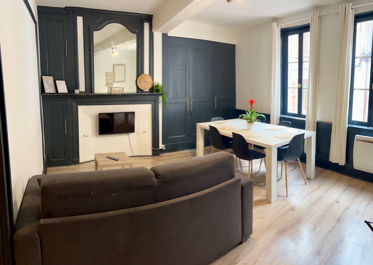In the heart of downtown, all shops on foot, we welcome you to the 2nd floor of a winemaker's house of the seventeenth. A completely renovated 4 stars apartment opens its doors. This accommodation is ideal for couples, business travelers and families with children. It consists of a bedroom with 1 double bed and a single bed, a second bedroom with a double bed and a sofa bed waiting for you in the living room. Seat and umbrella bed are available on request