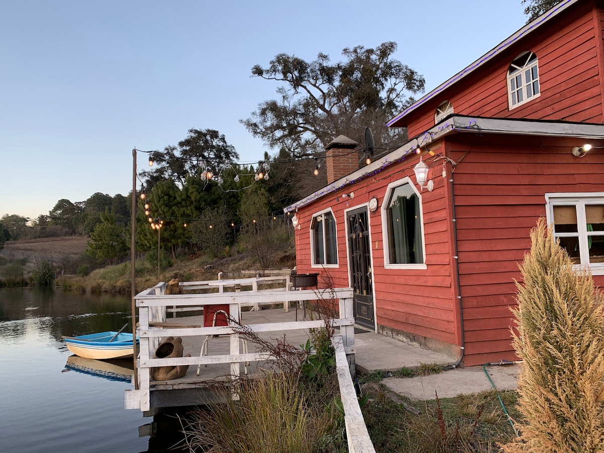 Cabaña rustica auténtica de madera, a su alrededor se encuentran otras 5 cabañas y un lago, todo de la misma propiedad de cabañas hacienda del carmen, cuentan con todos los servicios, luz y agua caliente. No hay señal de celular, perfecto para los que buscan tranquilidad en un encuentro con la naturaleza.