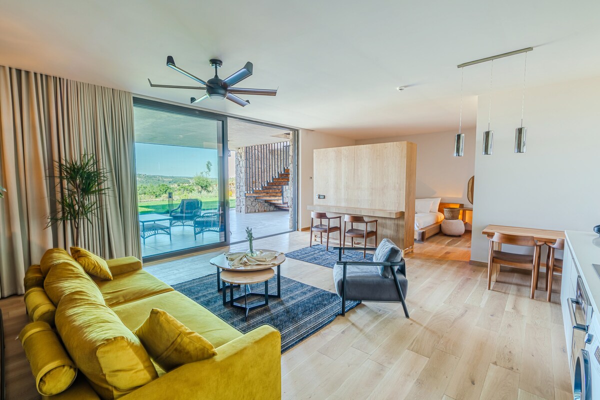 Enjoy a peaceful seaside escape in this spacious suite located in the heart of nature, right by the Aegean Sea. The room features a private balcony with breathtaking garden and sea views, a comfortable double bed, air conditioning, and a minibar. Guests enjoys complimentary breakfast served by the beach, along with their own dedicated sunbed, umbrella, and beach towels set up by the shoreline exclusively reserved according to the number of guests. A perfect getaway for couples or solo travelers.