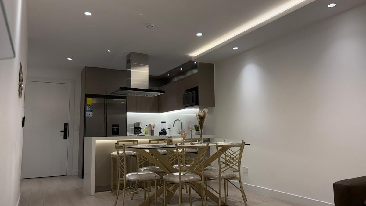 Luxuriöse Wohnung, verfügt über 1 Schlafzimmer und 1 bequemes Schlafsofa, komplett ausgestattet mit neuen Möbeln und komplettem Zubehör. Ideal für kurze und lange Aufenthalte. Gelegen in der besten und sichersten Gegend der Stadt, mit überdachtem Parkplatz und privatem Wachdienst rund um die Uhr Genieße einen Spaziergang im Tomebamba River Linear Park. In der Umgebung findest du schöne Plätze mit Cafés, Restaurants, Apotheken, Supermärkten und Tankstellen, zusätzlich zur Straßenbahn und den öffentlichen Verkehrsmitteln in der Nähe.