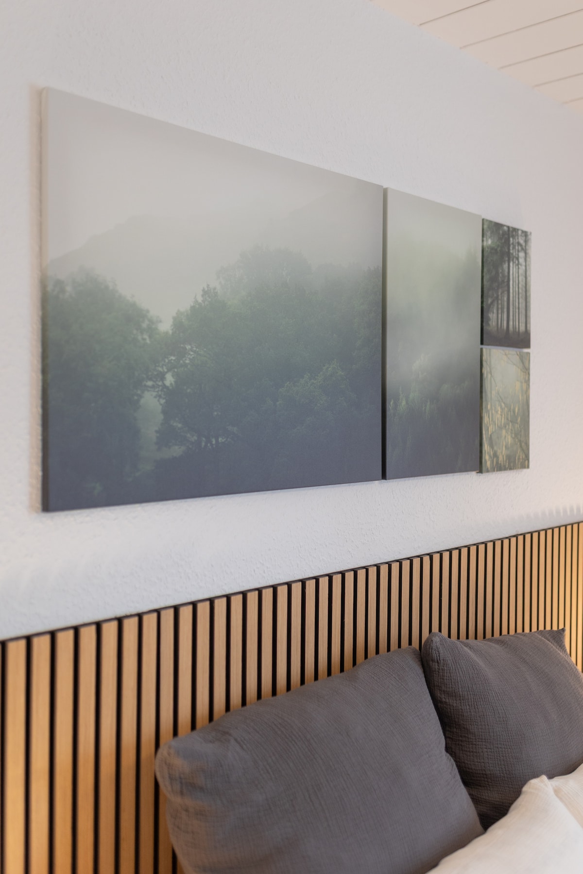 NEU: Direkt neben „Mono" steht ein weiteres Haus, „Nest im Wald“. Kann man auch besuchen. Oder beide… „Mono“ ist ein vor Jahrzehnten ausgebauter Trailer. Im Zuge einer Komplettsanierung bekam es 2020 rundum ein Timber-Frame-Skelett (neues Dach, neue Dämmung etc.) und damit eine erste Etage. Größe: 3,20 mal 13 Meter. Es heißt "Mono", da sein Außen, so wie auch jeder Raum innen, von hauptsächlich einer Farbe bestimmt wird.