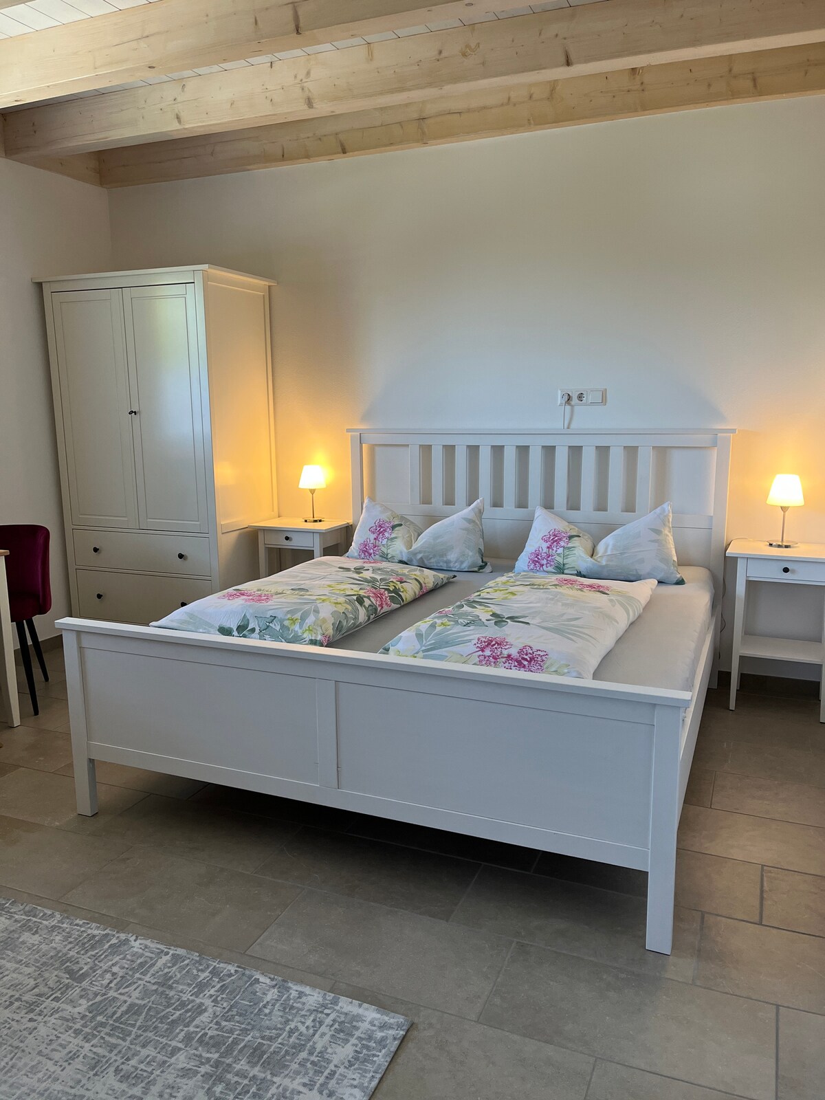 Die Ferienwohnung besteht aus einem großen Wohn-/Schlafraum (EBK, Essplatz, Doppelbett und Sofa) mit großem Balkon. Ein Schlafzimmer mit Doppelbett und Einzelbett. Das Bad ist mit einer Dusche und WC ausgestattet. Um das Haus ist genügend Platz zum Spielen und Toben. Nebenan befindet sich das Stallgebäude. Die Ferienwohnung wurde 2017 komplett neu renoviert! Beliebte Ausflugsziele: - Thermalbäder u. Naturbadeseen - Wurzacher-Ried - Bauernhaus u. Automuseum Wolfegg - Bodensee - Allgäuer Alpen